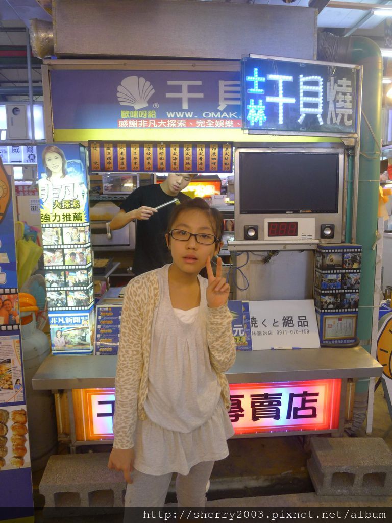 這家以獨特口味在士林夜市打出一片天的干貝燒可是被眾多美食節目介紹過(攤位左方貼了一堆推薦,不過我們就沒照了)。
