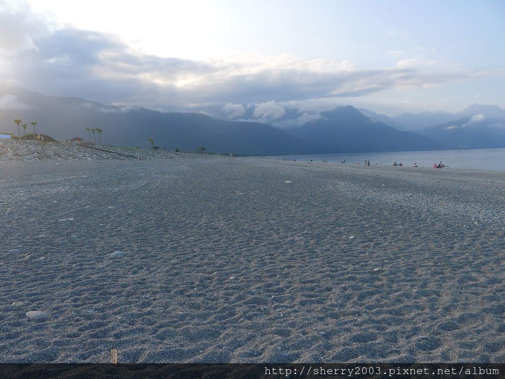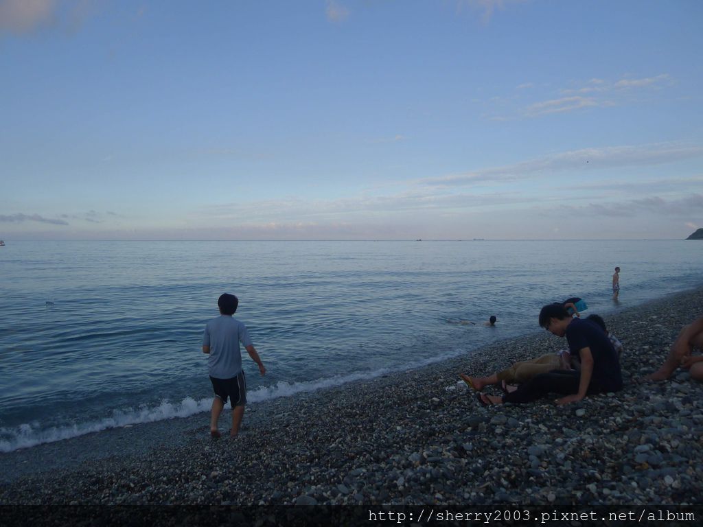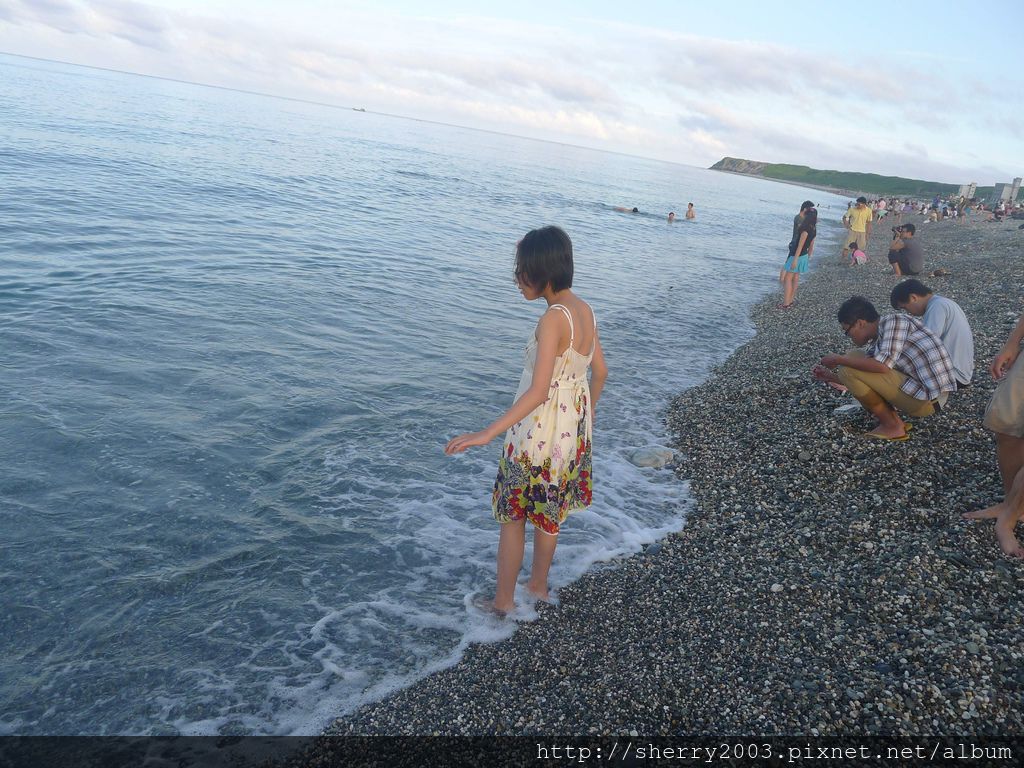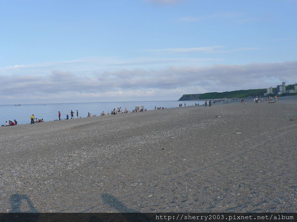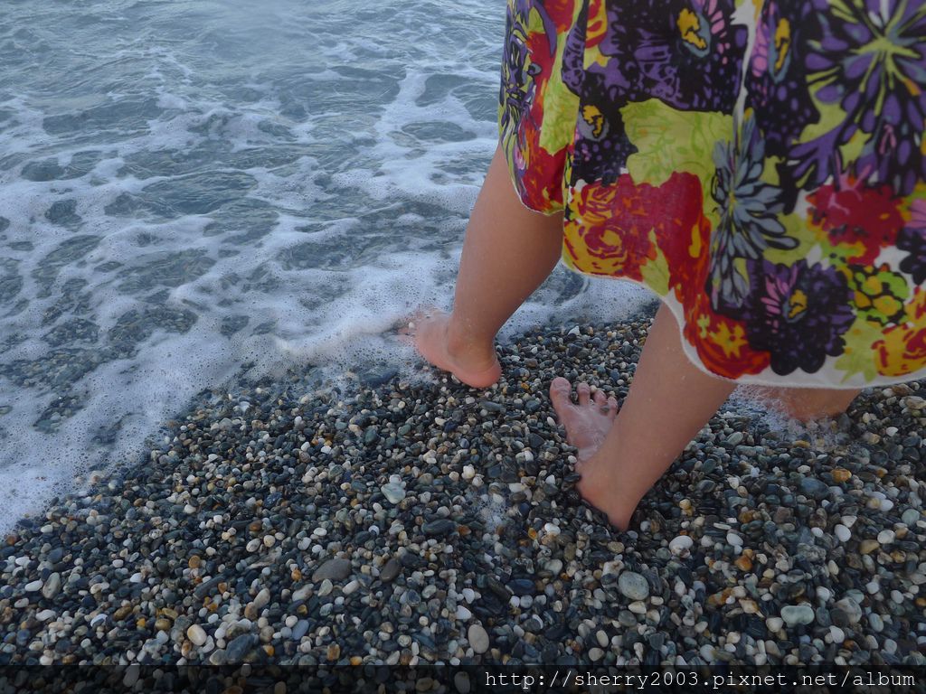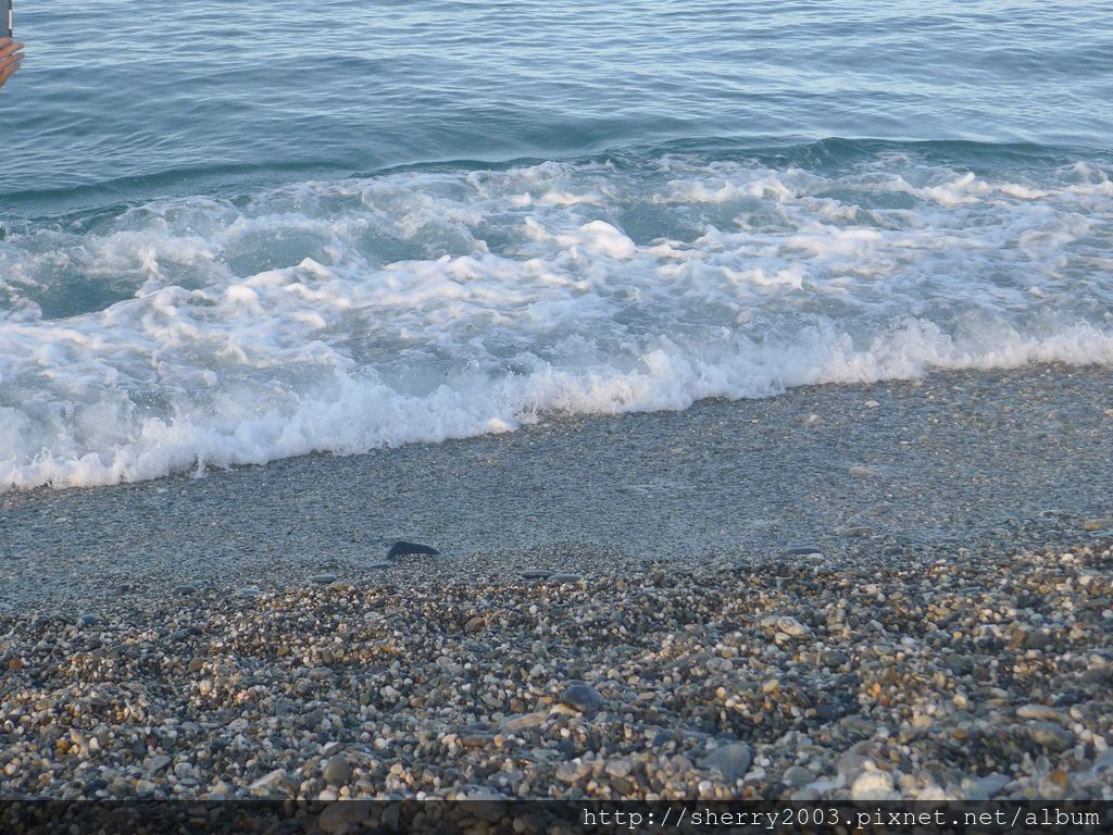 沿著大片的礫石慢慢的走向海邊,踩在腳上的感覺高高低低大大小小,好奇妙。