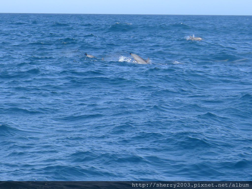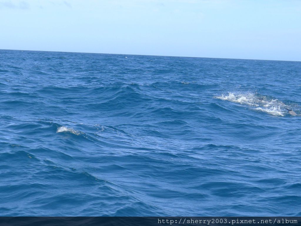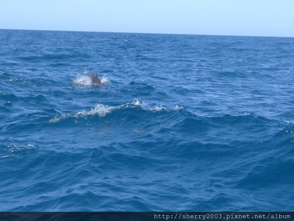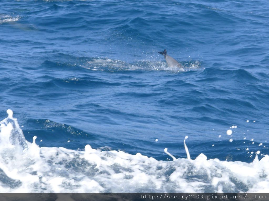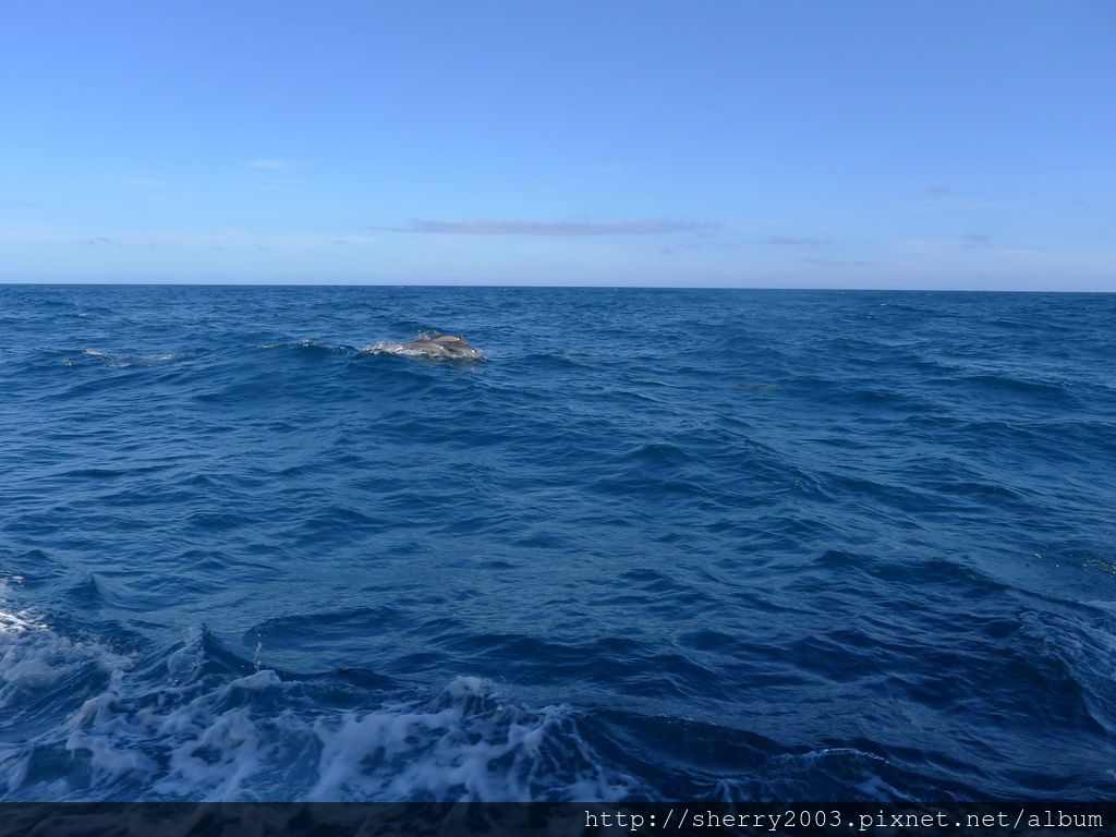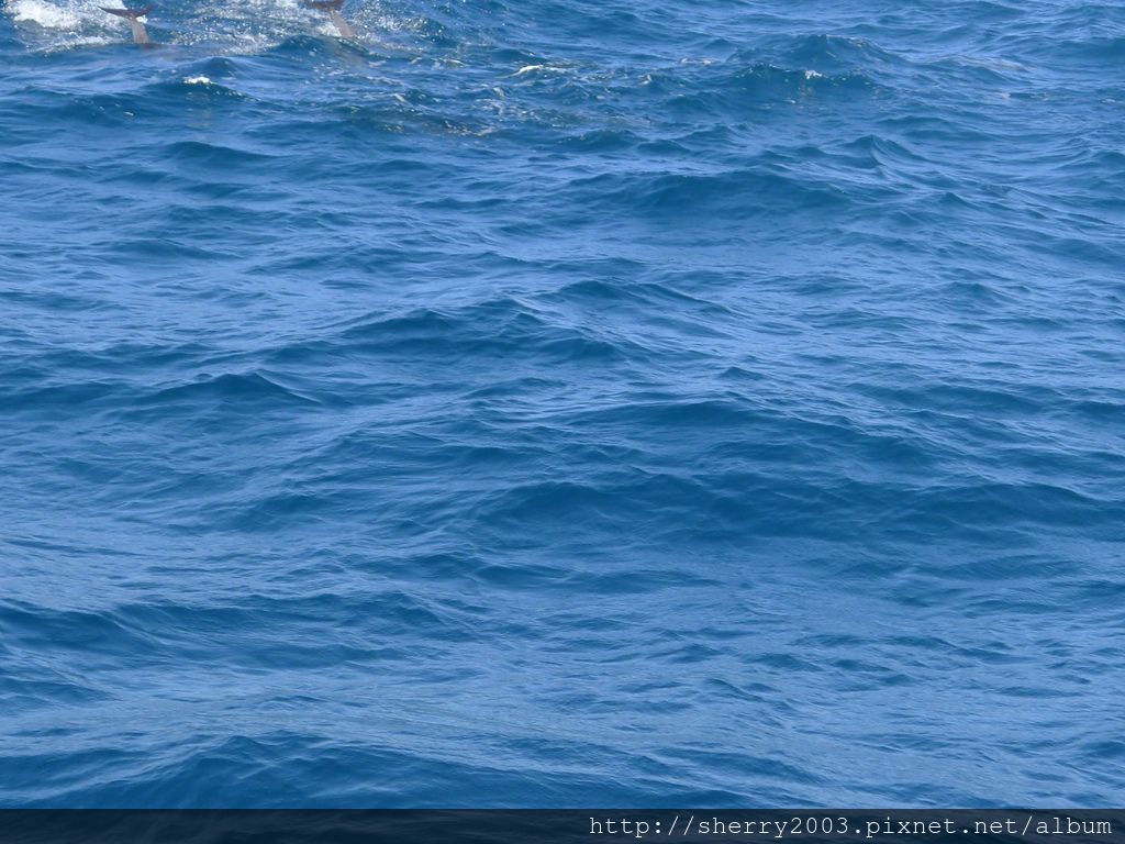 海豚每次浮出水面呼吸的時間長短不一,要抓緊時間看好喔...這張就是失敗的例子。