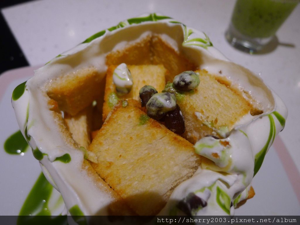 我們這邊點的是偏酥脆的口感,吐司條沾點鮮奶以及冰淇淋一起吃下去,酥甜中配著抹茶味,爆香啊!
