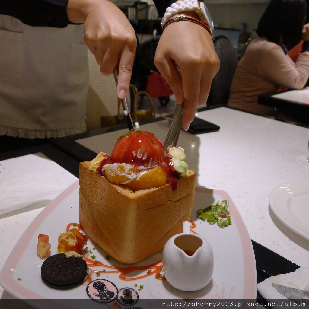 這次請服務生來幫忙切吐司,因為小Sherry要裝淑女了。