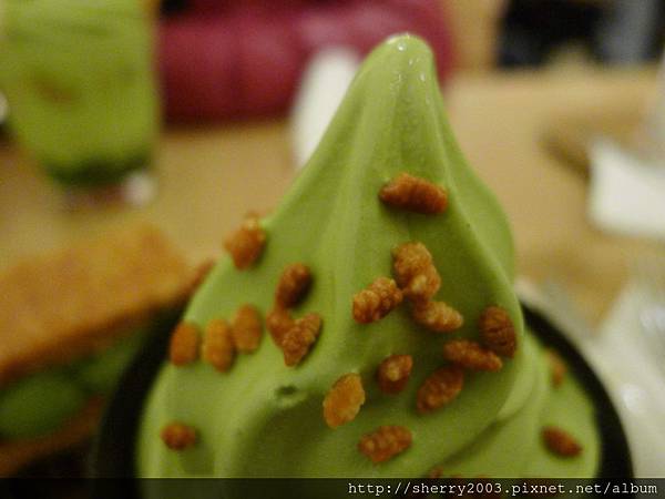 每一口抹茶香的霜淇淋中都可能會爆出玄米的特殊香氛再重新讓霜淇淋回甘,好搭啊!