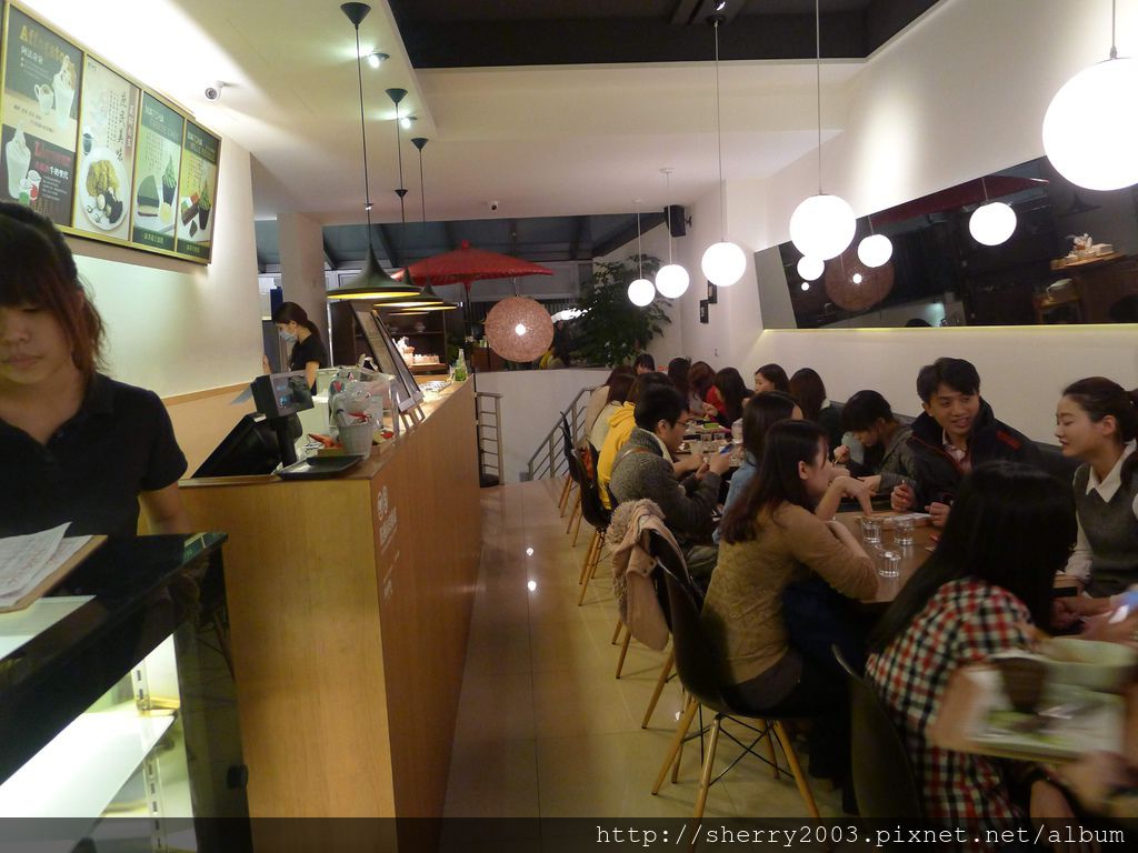 今天的運氣不錯,剛好一大批人陸續吃完離開,我們只等了十幾分鐘就可以入座了,果然,座位被安排在樓下。