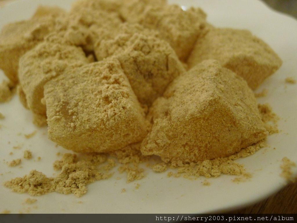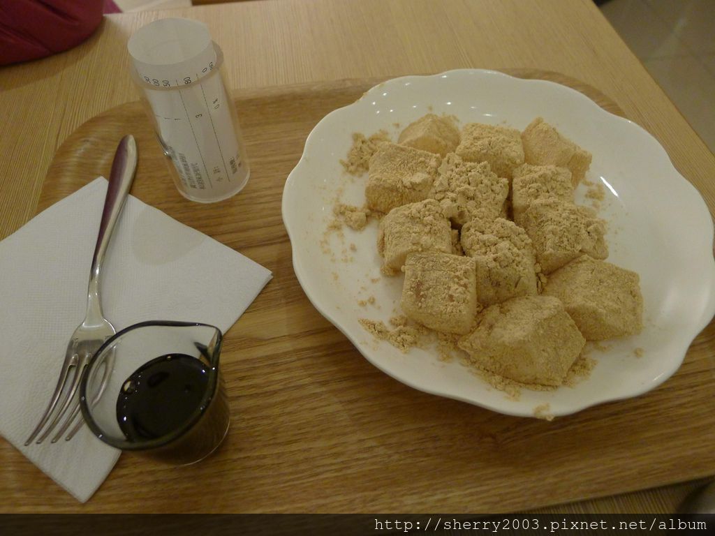 有點像是上面灑滿了黃豆粉的小麻糬,單獨吃蕨餅幾乎只有黃豆粉的味道。