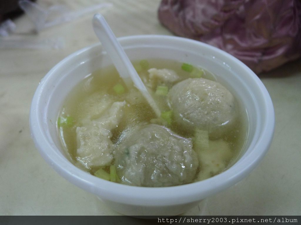 在冷冷的天氣除了點份蚵仔煎($50)外,如果也來碗熱騰騰的也不錯,所以我們也點了一碗綜合湯($45),裡面除了有貢丸外,還有魚丸、燕丸跟魚羹,四合一的口味,夠豐富。