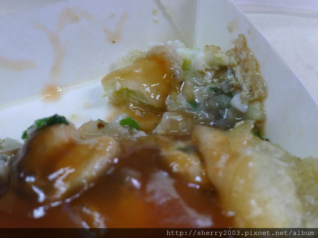 看!不同於勾芡得軟綿綿的蚵仔煎,莊家的有那種桿間的感覺,邊緣特別的爽脆好吃。