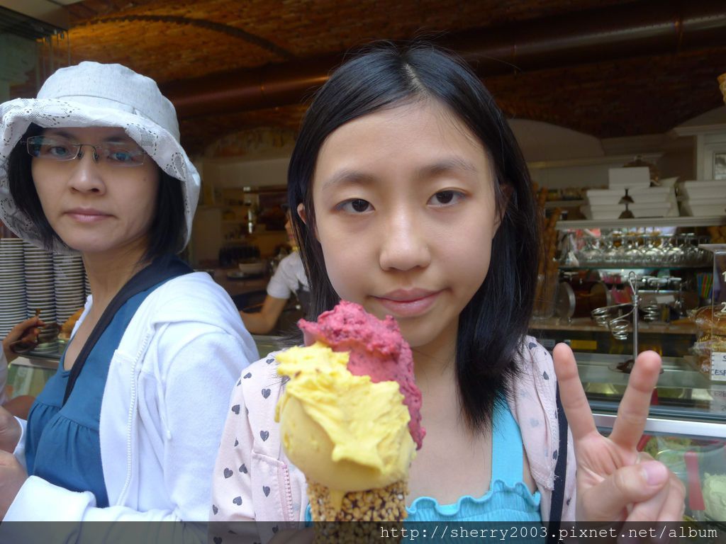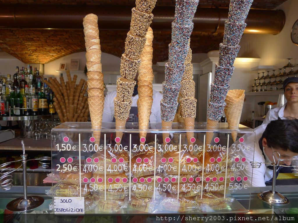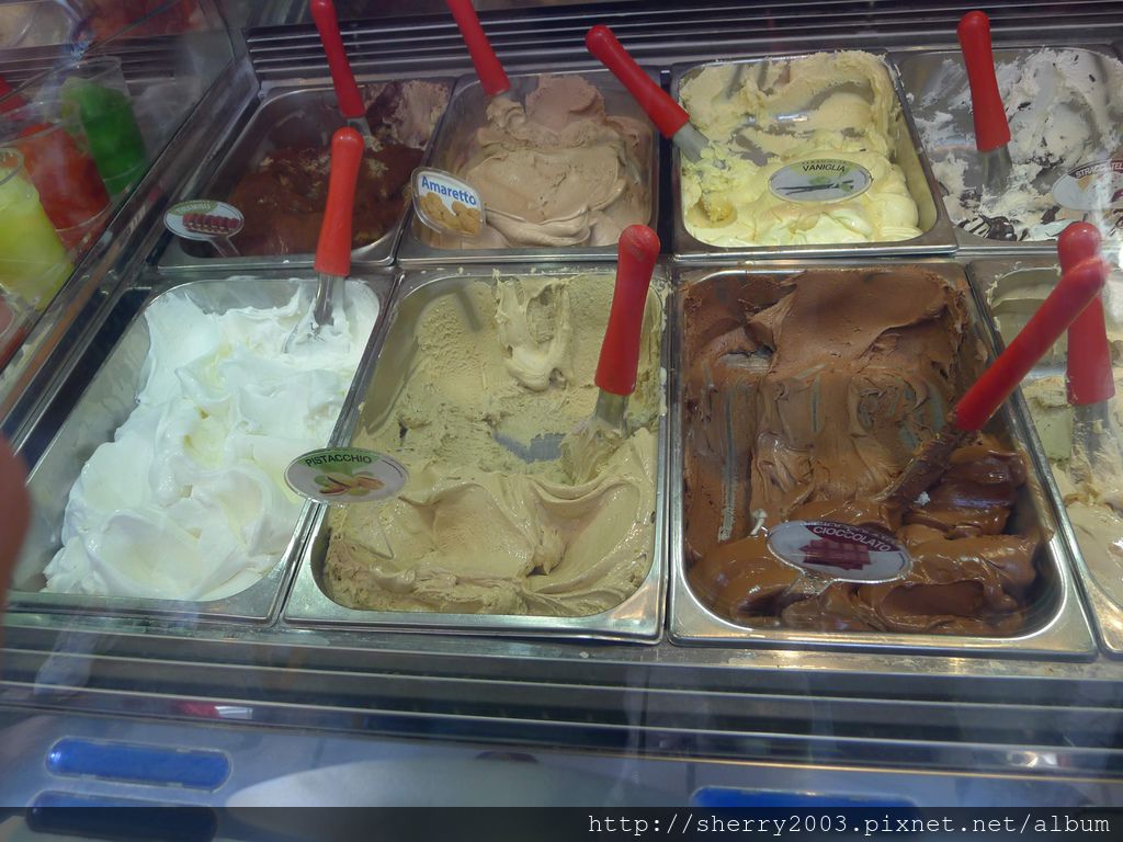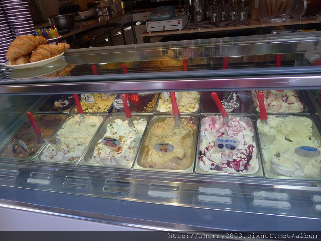義大利公廁超少,所以很多時候都是去店家用餐順便上廁所,喝咖啡的當然也可以,不過咖啡利尿啊!!!上廁所後喝咖啡,喝完又想上,上完後又喝,惡性循環,所以吃冰淇淋不錯吼~~~