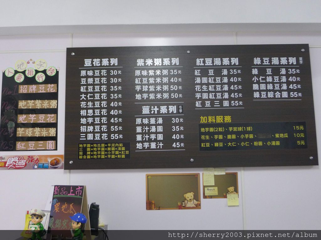 招牌豆花裡面有招牌…!?不,是有豆花、有地芋圓、有小QQ,還有甜蜜的紅豆,種類不少,小佛心。