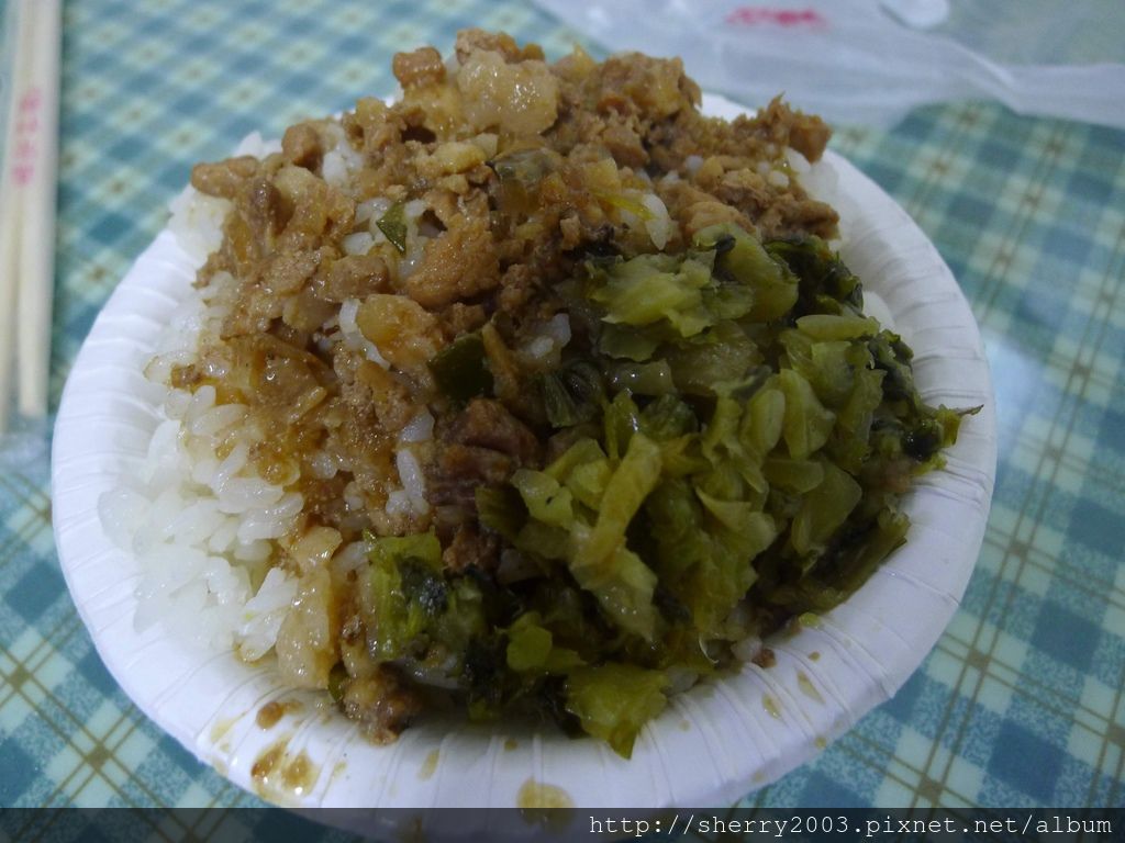 先看看滷肉飯,放得滿滿的滷肉以及酸菜,讓人差點看不到白飯。