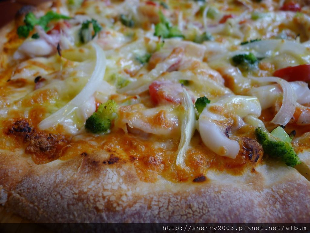 艾蜜奇的披薩是屬於薄皮偏軟的口感,濕潤度較高,所以超級熱騰騰的。