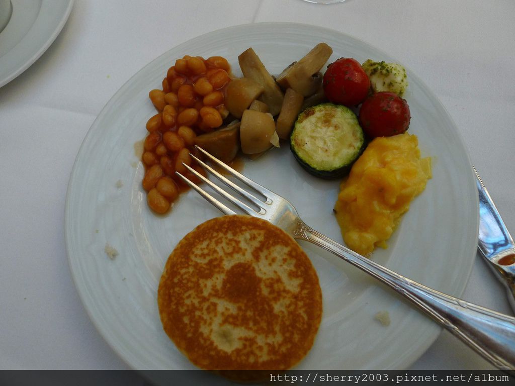 來自西班牙的早餐體驗,感覺還不錯,搭配著美麗的彩色玻璃穹頂,都滿足了。