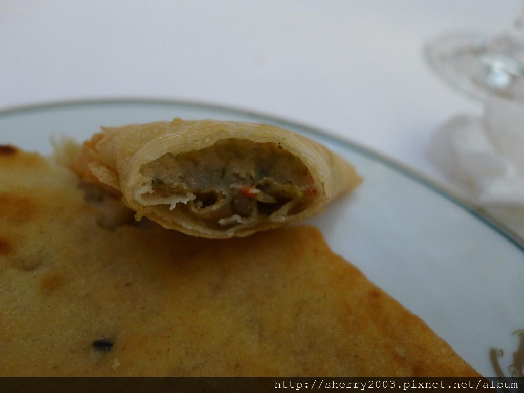 蔬菜餅混了好幾種打成菜泥的內餡,有點吃不出來是什麼!不過不討厭。