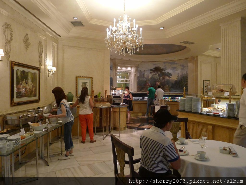 用餐的地點在酒店的一樓,從大廳直走到底就可以抵達了,第二晚時還看見皇室在這邊宴請賓客,香車美女,鬢影衣香,讓人超想一探究竟的,可惜有管制捏。