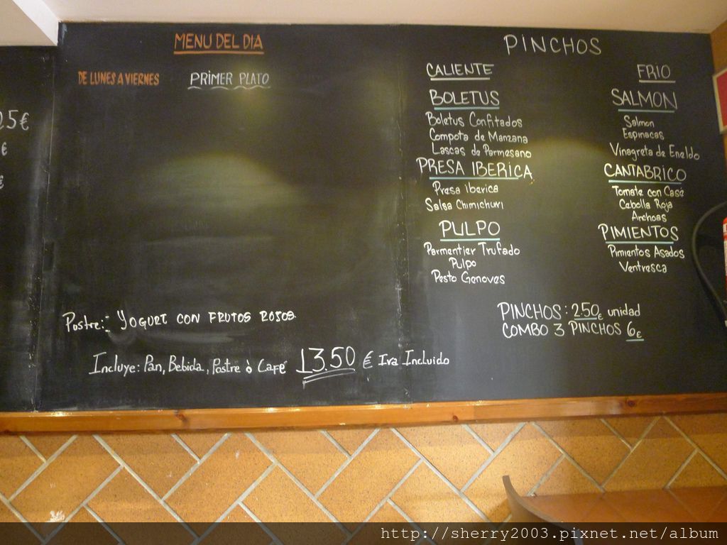 牆上的手寫菜單,有Pinchos,小心動,有機會吃到嗎?