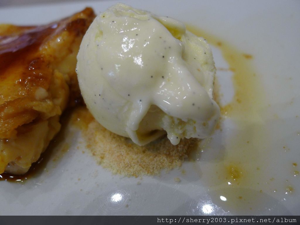 飯後甜點,甜度A+的焦糖布丁以及冰淇淋,昨天中午吃的甜點要喝水來解除負面狀態,今天的讓我們重複中槍,哀哉。