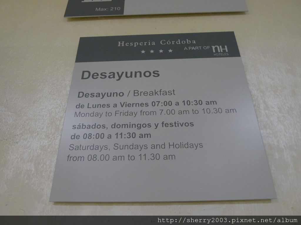 話說雖然在哥多華的住宿飯店Hotel Hesperia Cordoba內容有點簡單,房間景色有點單調,不過早餐內容還算不錯,稍稍彌補了我們脆弱的心靈。