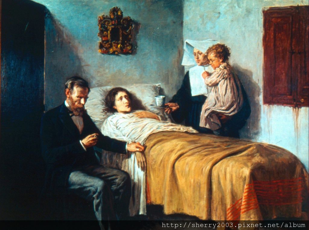 另外,病人是以畢卡索的妹妹為主角,醫生代表科學,修女代表慈愛,相信嗎?這是十六歲孩子的作品,就算我們六十六歲應該也畫不出來吼。