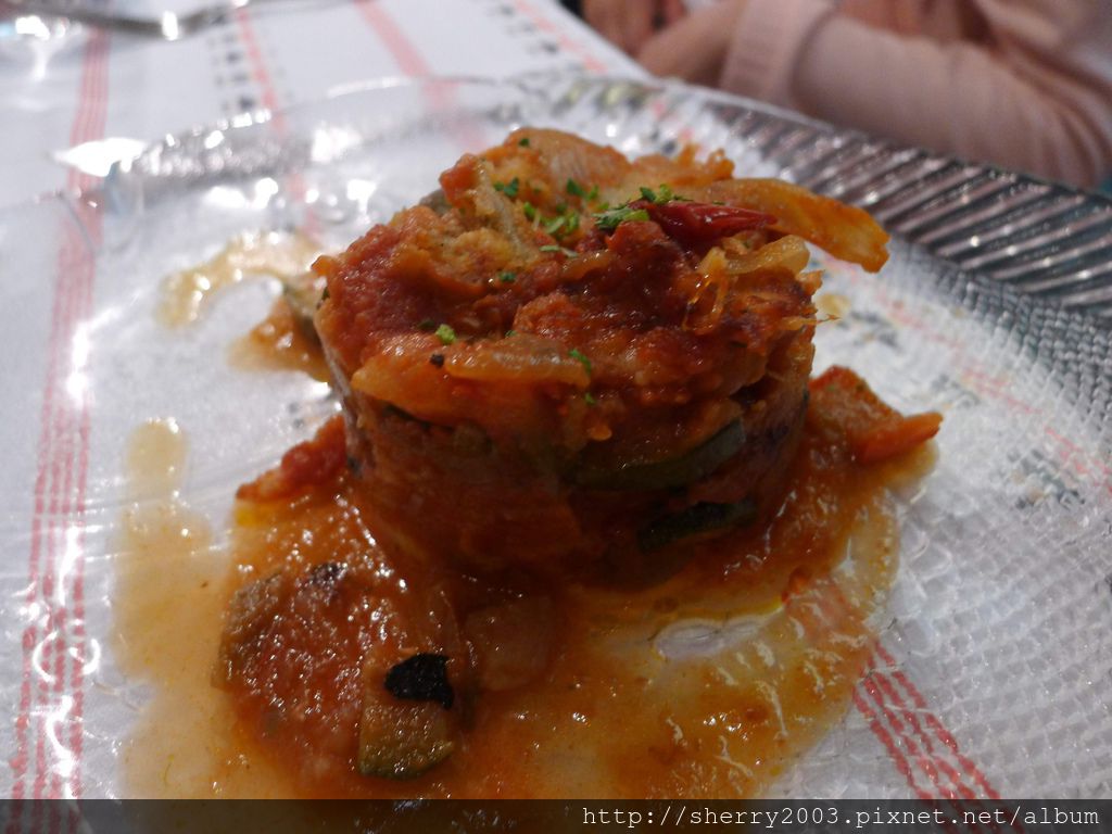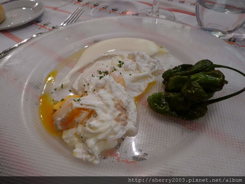 另一道開胃菜,似乎是TAPAS,有炸青椒與半熟蛋,組合比較少見,青椒一樣好吃。