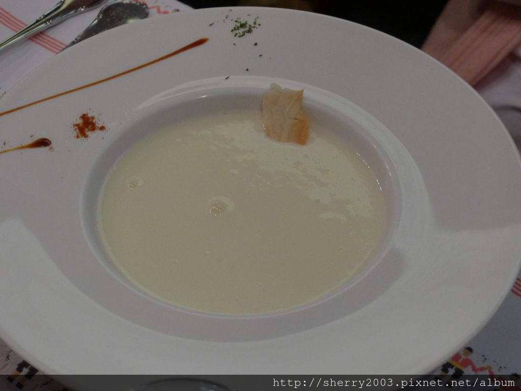開胃菜,那小杯的不是日式的沙瓦,是一種冷湯,有比較強的蘑菇味。