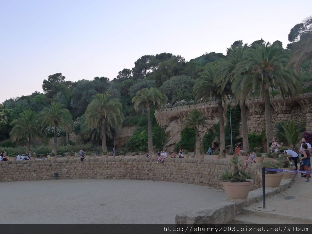 這邊是屬於希臘劇場上方的平台,平台除了是廣場,也是劇場,由高第和另一位建築師Josep Maria Jujol合作設計出來的,圍繞劇場四周的馬賽克長石椅,不只色彩斑斕,坐起來更是舒服。