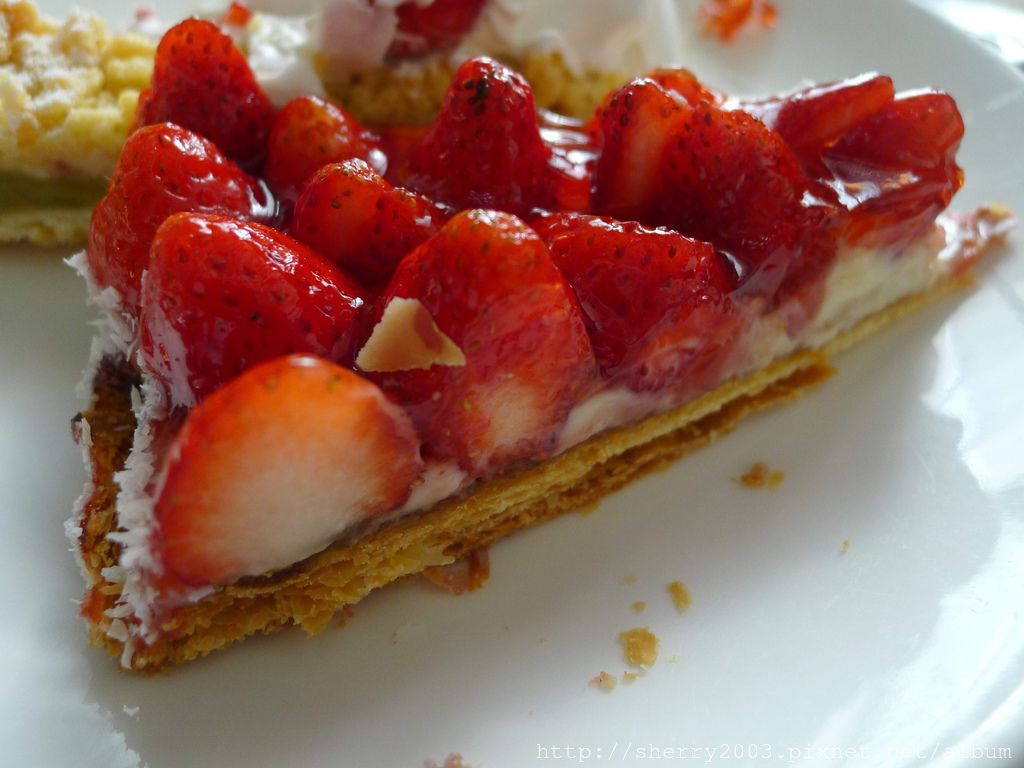 滿滿的草莓緊密的佈滿在千層的派皮之上,微帶結實,卻有足夠脆度的派皮配著草莓一起入口最是開胃了。