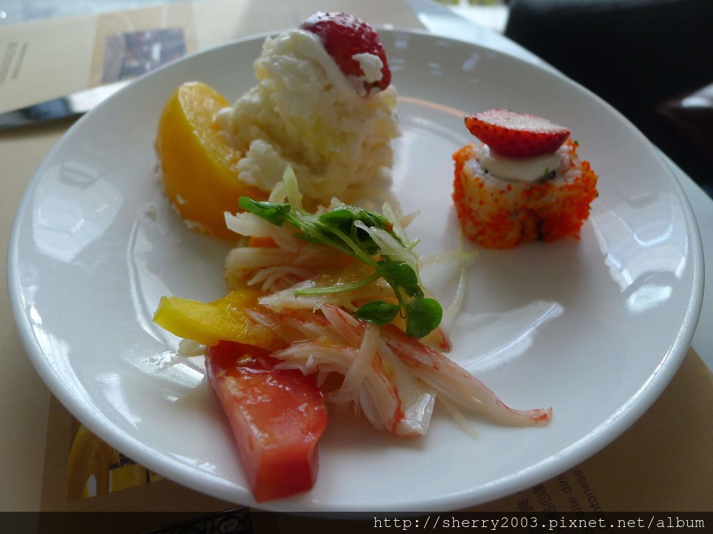 不過剛剛提到的草莓壽司以及鮮芋沙拉實在是太好吃了,是這次的極品雙嬌(鹹食部分),爽口的滋味讓我們每吃幾道甜點都忍不住回來轉換一下味道。