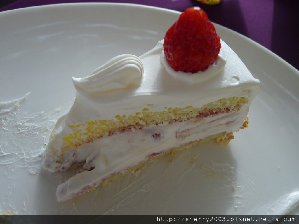 底層類似扎實的海綿蛋糕,頂著草莓果凍以及一顆草莓,並未感受到突出的味覺。