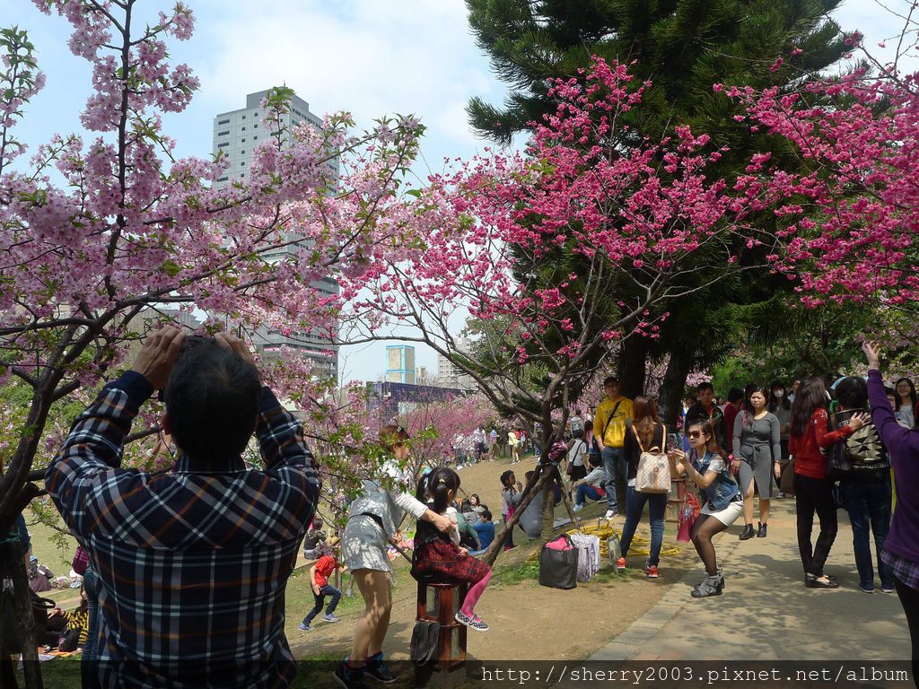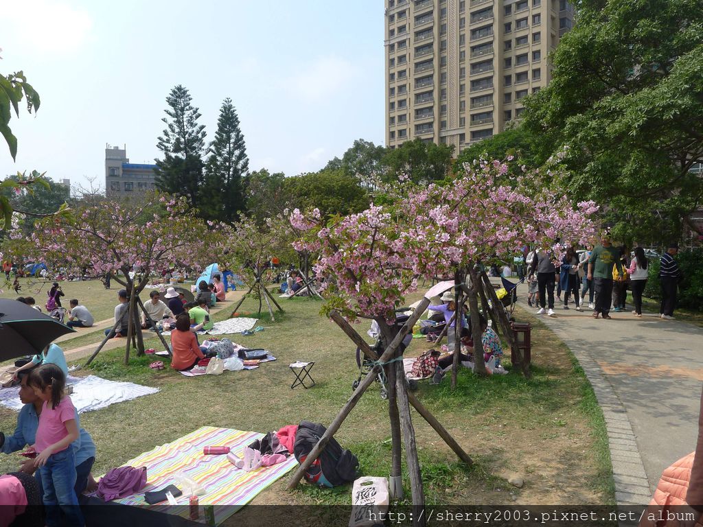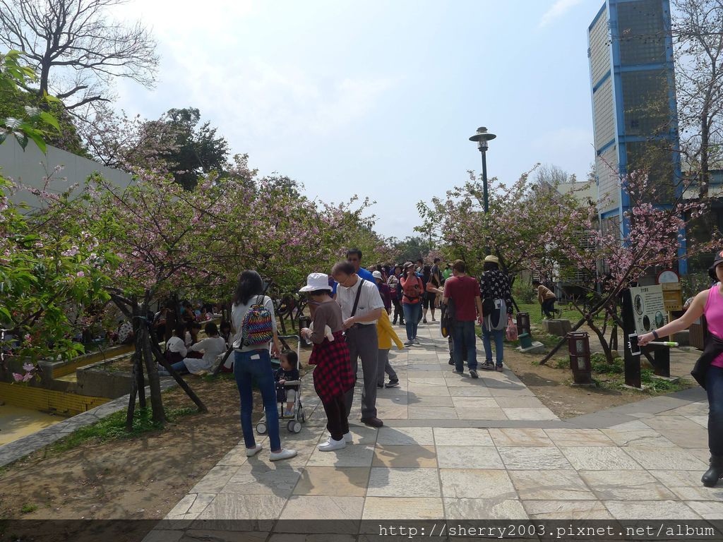 繞著圓形櫻花公園,距離不長,不過卻要走好一段時間,因為要衝過擁擠的人潮說。