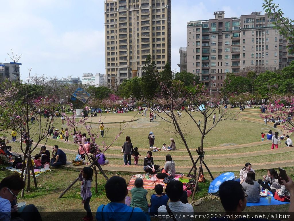 走過櫻花步道,後方的圓形櫻花公園更是聚集了大量的人潮。