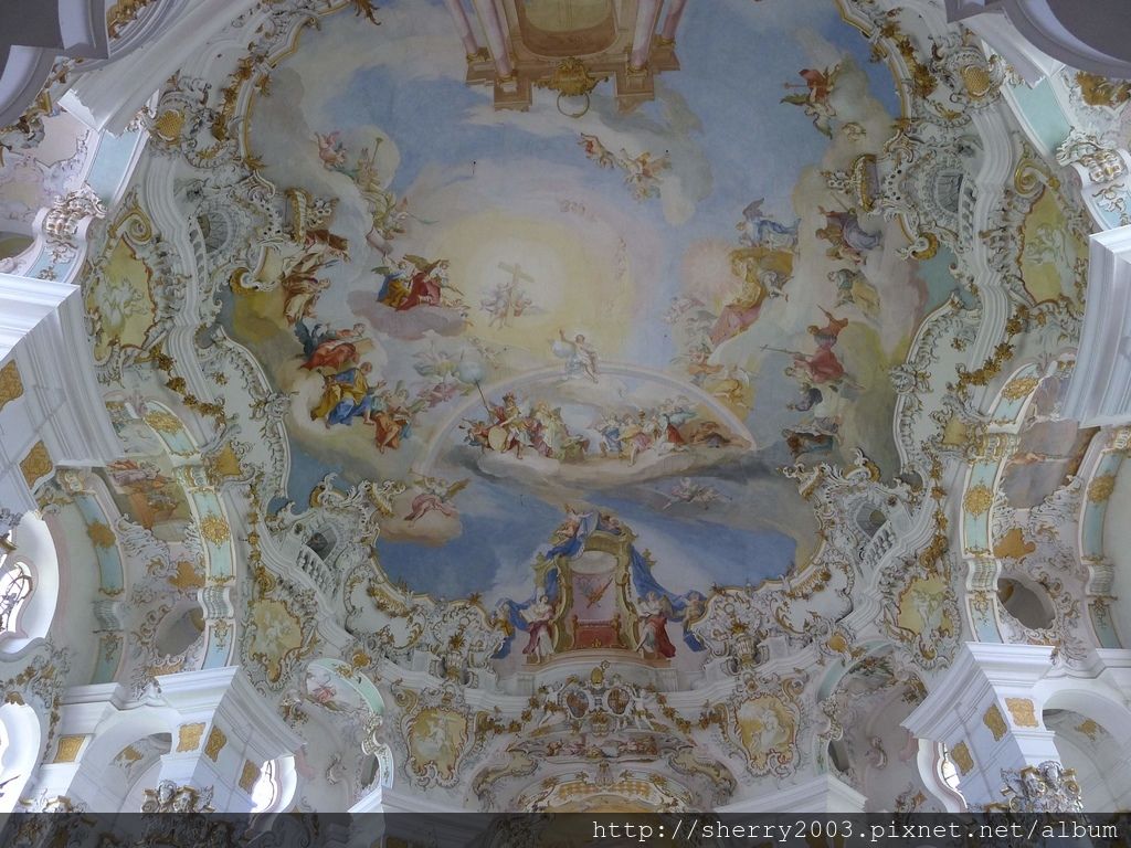 另外,天花板的濕壁畫也是巴伐利亞的傑作,200多年前的3D圖,太有藝術性了。