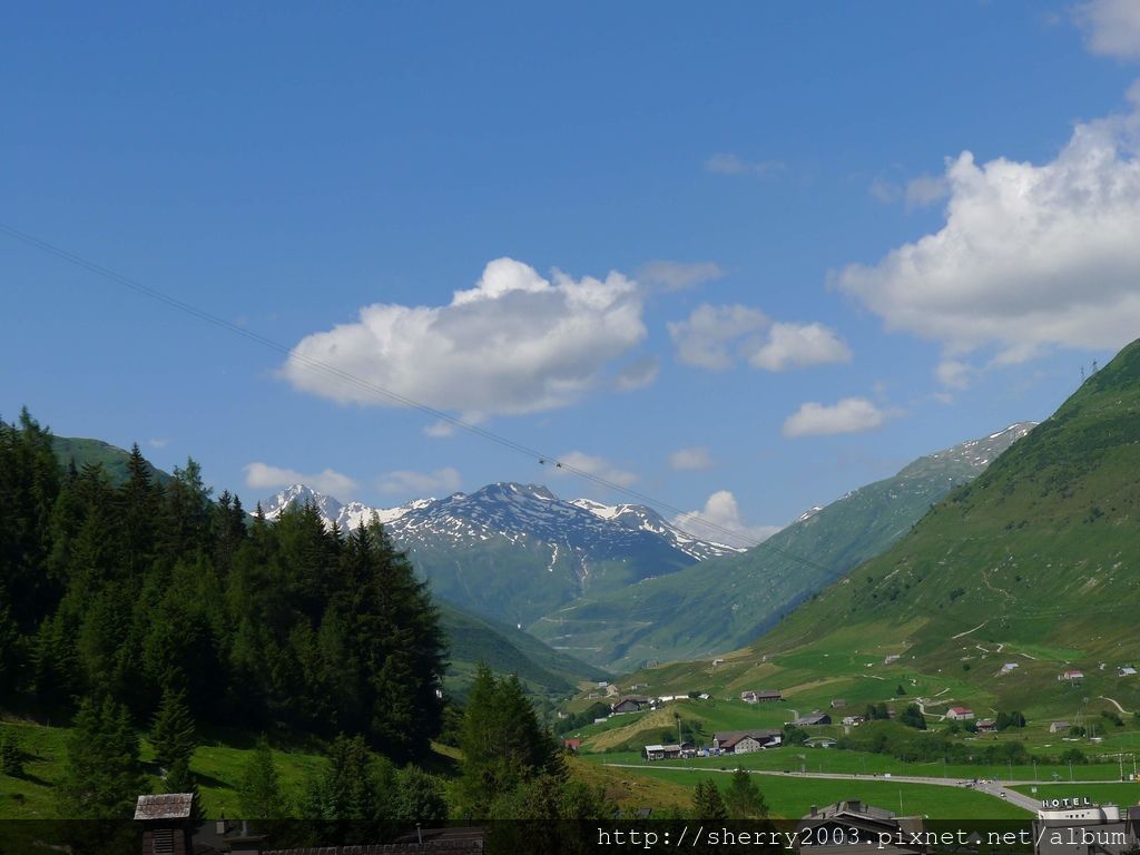 不過,說真的,安德馬特下行的景色真的與想像中有著綠草如茵的草地、雪白壯麗的阿爾卑斯山、七彩繽紛的山中小花以及深竣湛藍的美麗湖泊等有點差異。