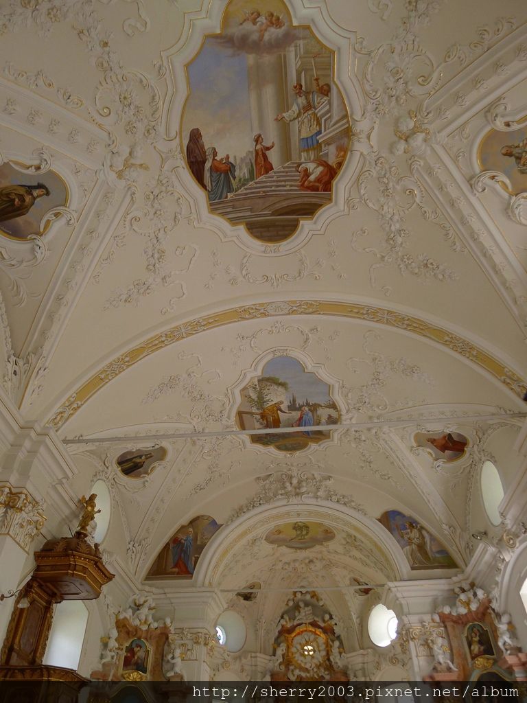 教堂內部與德南的威斯教堂一樣,都是屬於重視裝潢的洛可可藝術。