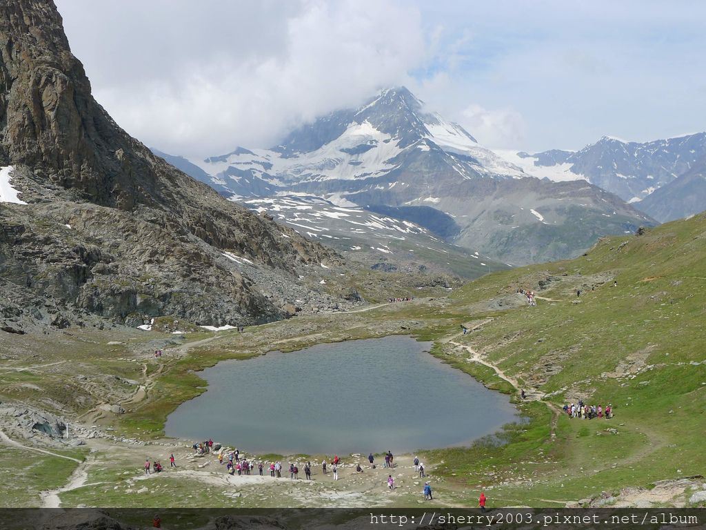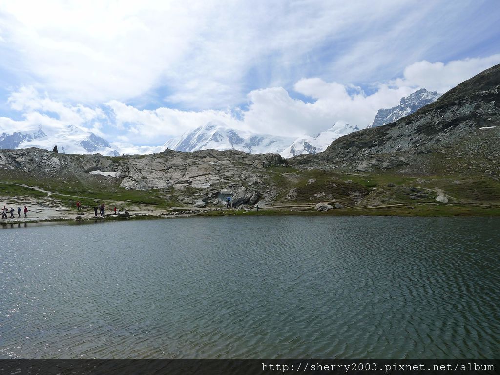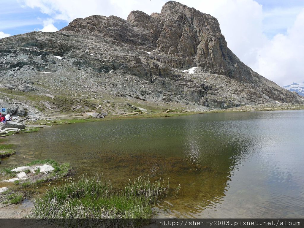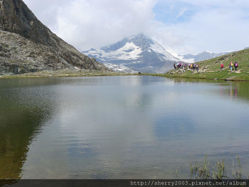 而且因為前方就是馬特洪峰,所以在晴朗天氣時,在湖面可以欣賞到馬特洪峰的倒影,比起一般蔚藍的湖面,深黑的湖面倒影搭配白褐色的馬特洪峰更顯出那種冷俏、凜冽的美感。