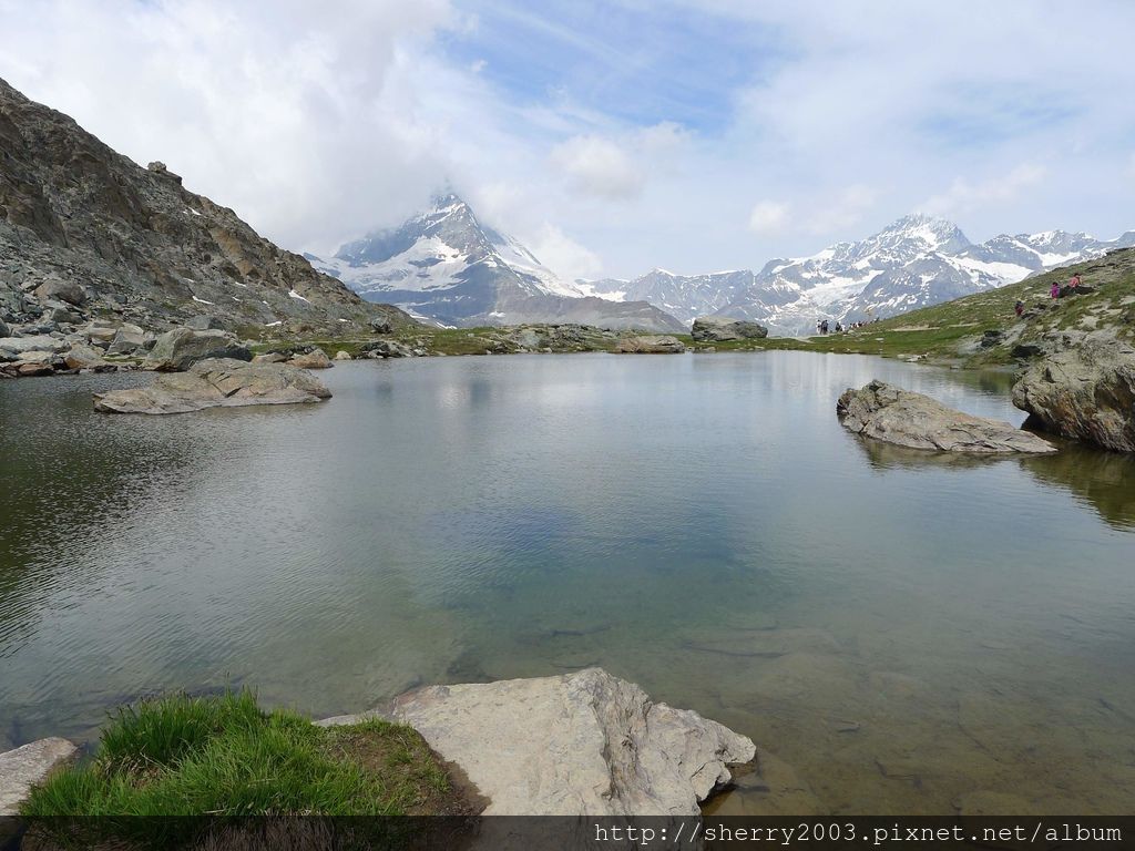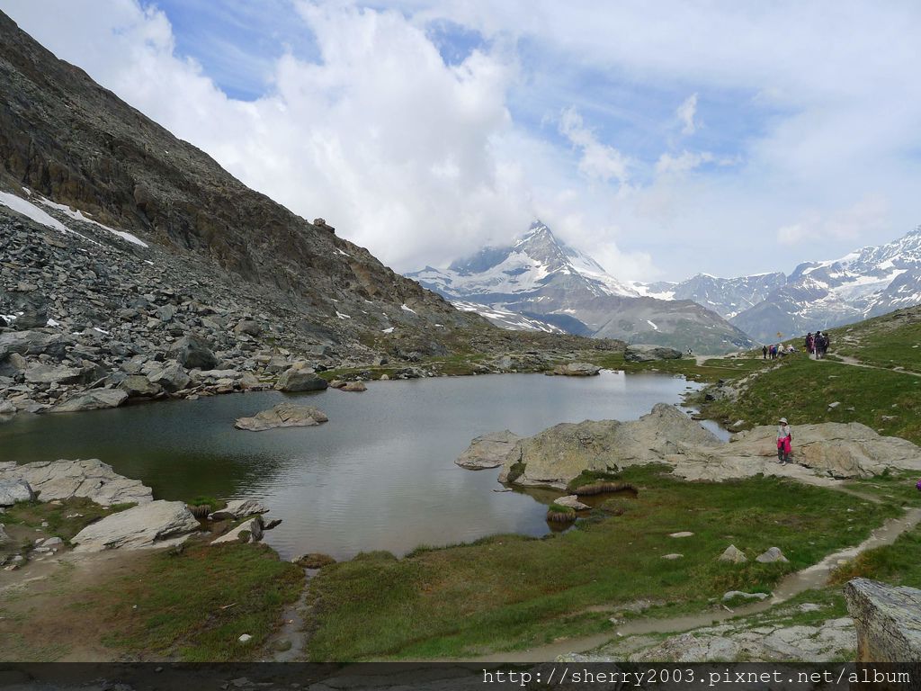 靠近湖邊,可以看到遠方的馬特洪峰。