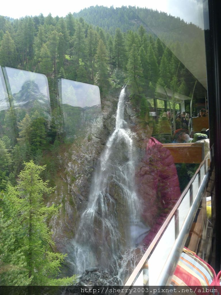 搭乘著下行的登山鐵道回到策馬特,路上還看到了久違的小瀑布。