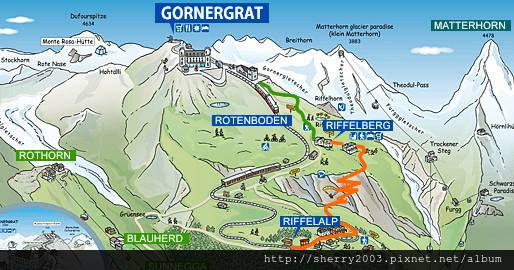 我們在前一篇中提到,從高納葛拉特展望台(Gornergrat)參拜完美人嬌羞,微露小臉的馬特洪峰後,我們還有一個健行行程。