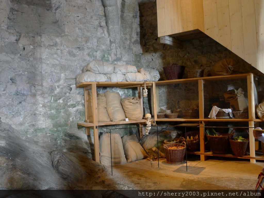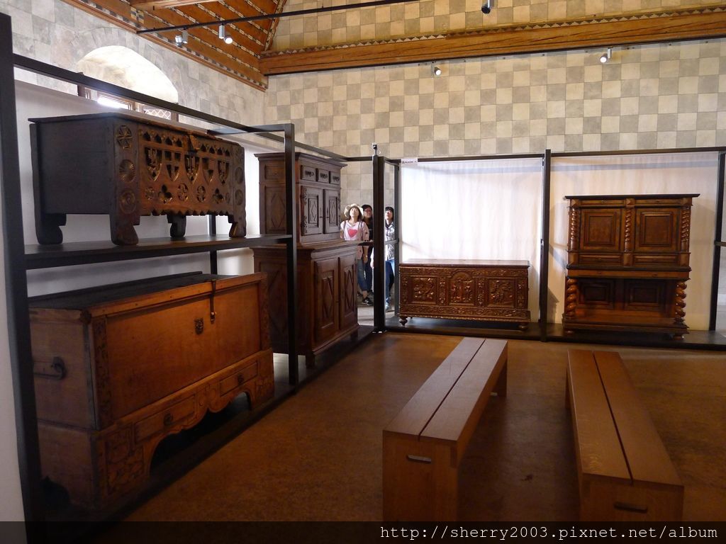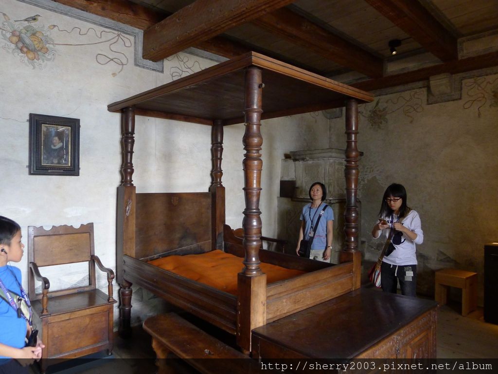 繼續往前走,這張床大家感覺似乎有點短吼,七八百年前瑞士人是用半坐著睡覺的,所以床真的不長。