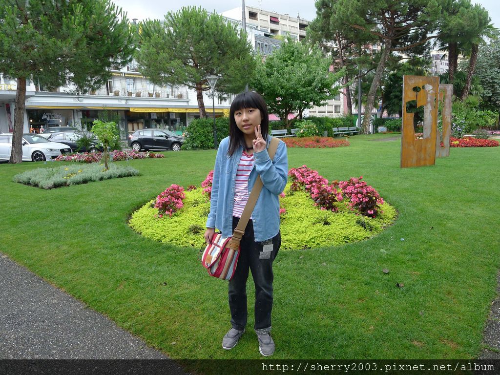 一旁公園中繁花似錦,小Sherry也喜歡這種景致。