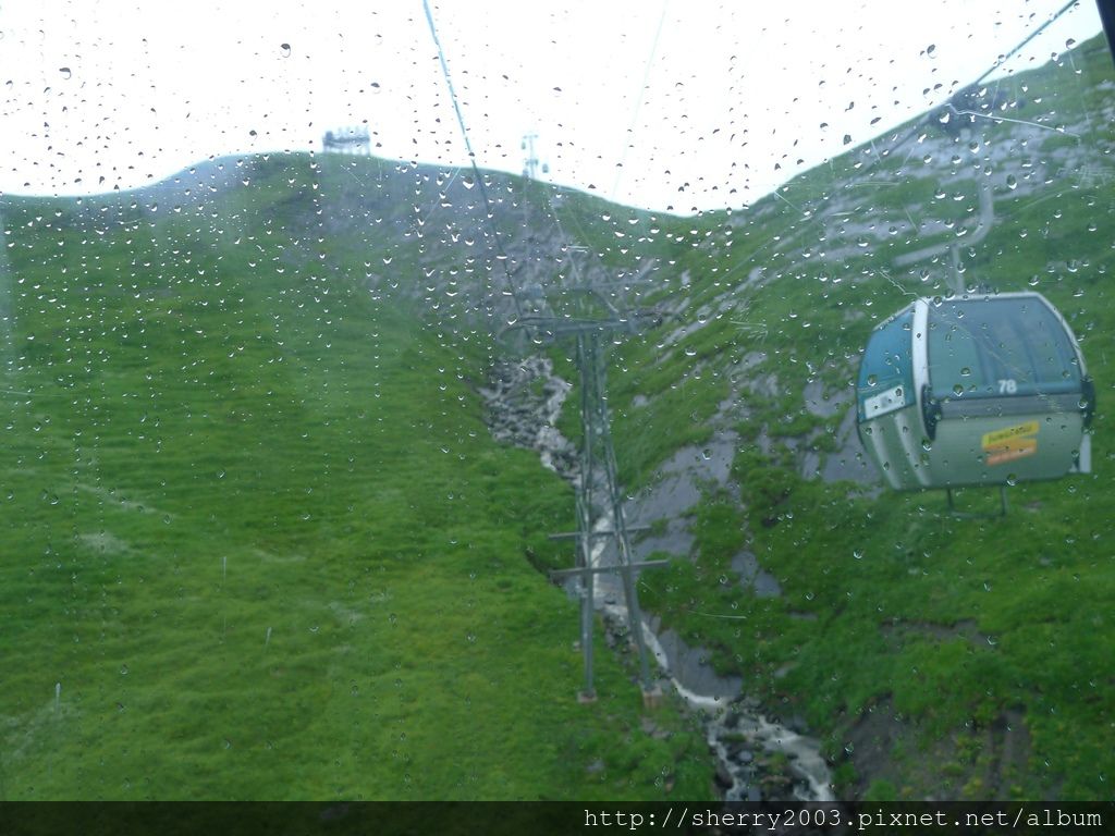 下山的纜車,途中雨勢依舊,滴滴答答好似在心坎中跳著美麗的舞蹈。