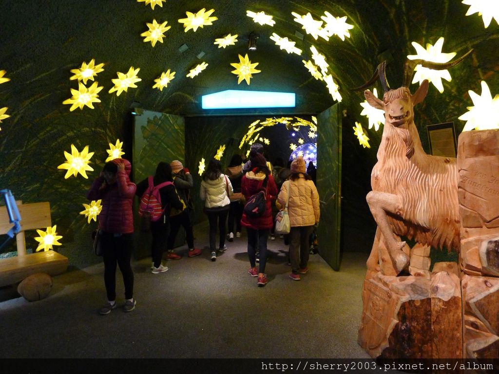 順著冰宮前進,地面有點滑,請放慢腳步,或是握住側邊把手。