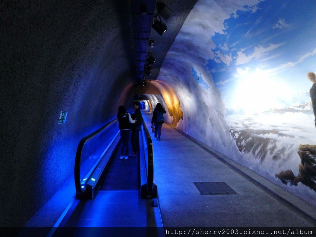 從瞭望台下來後右方有一條直通阿萊奇冰河(No.5)少女峰雪原(Jungfraufirn)戶外玩雪區的通道,瞭望台與戶外雪區這兩段介紹就請參考前一篇文章了。