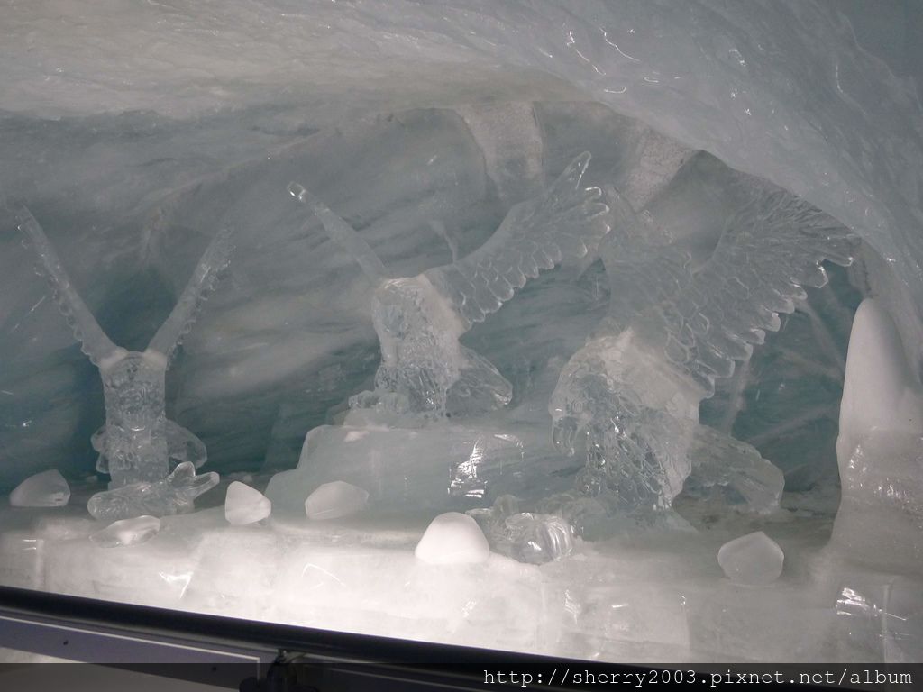 這些冰雕在天然的冰雪環境中,應該是百年不壞吧!