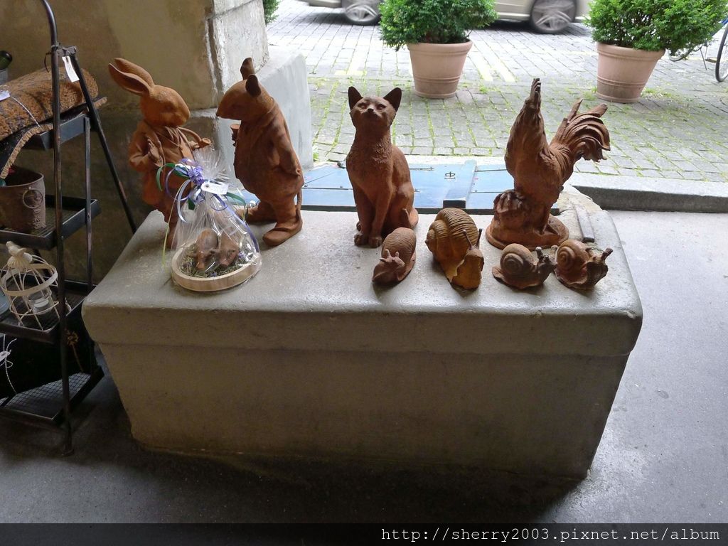 來得稍早了點,沿途許多店家都還沒開門,不過放在店門口的可愛雕像很cute呢。