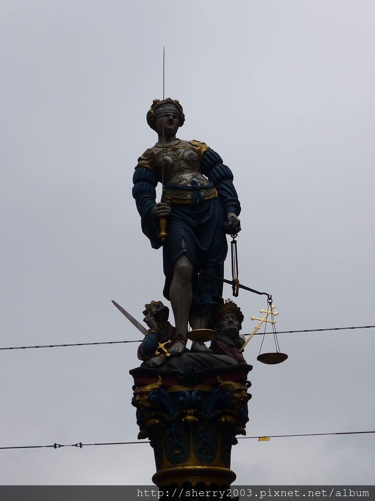 正義女神噴泉(Gerechtigkeits-brunnen),遮住的眼睛,代表不要先入為主,要公平看待事物。