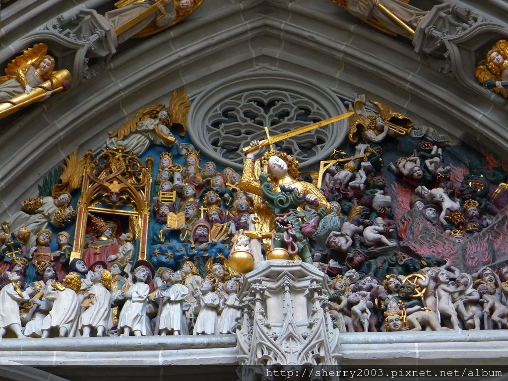 立面呈現的是「最後的審判」聖像,當然,目前的是複製品,原作在伯恩歷史博物館。