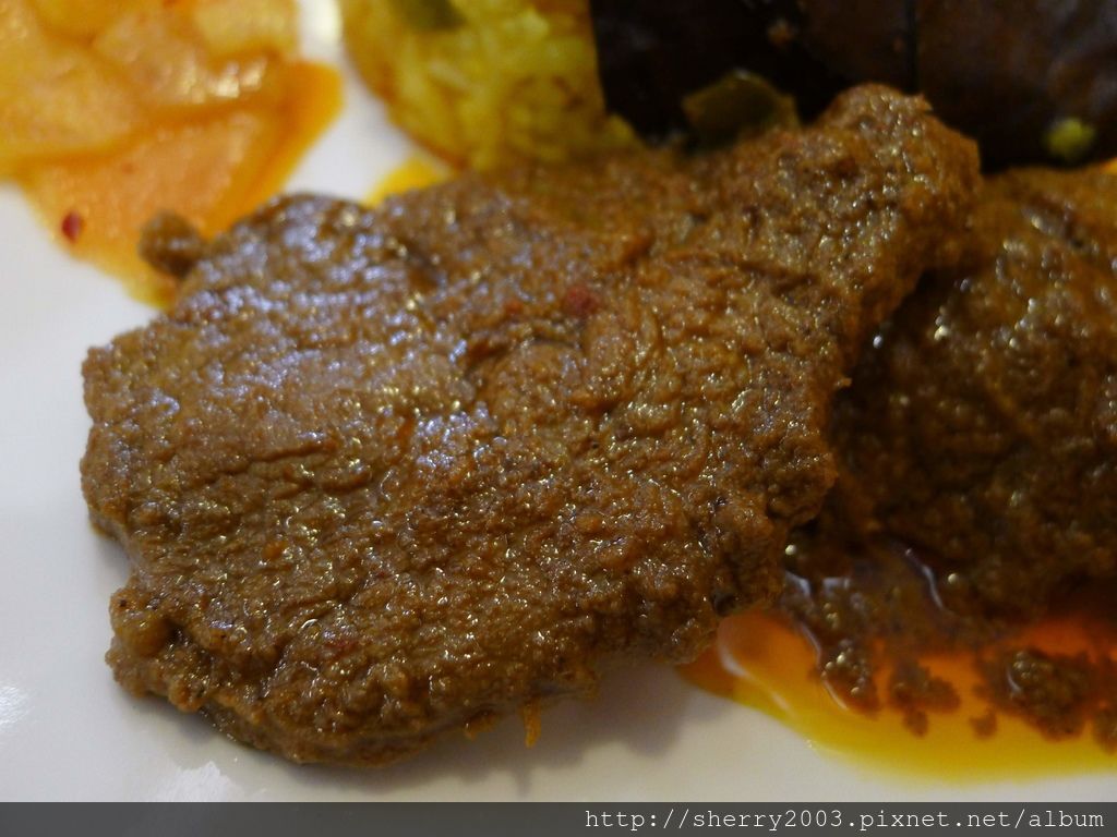 使用多種香料醃製,加上椰漿提味過,雖說是厚實的牛肉,但是口感卻是嫩口中帶咬勁。