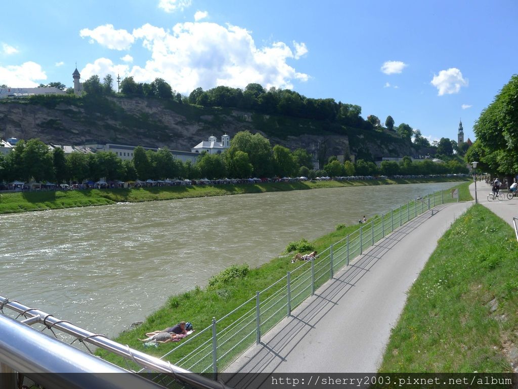 跨過薩爾茨河(Salzach)可以到達老城區,那河岸草地上一對對的情侶分布得好有規律啊!
