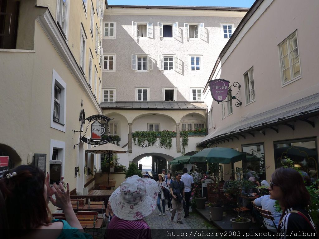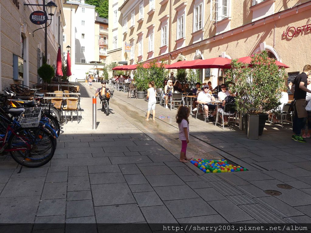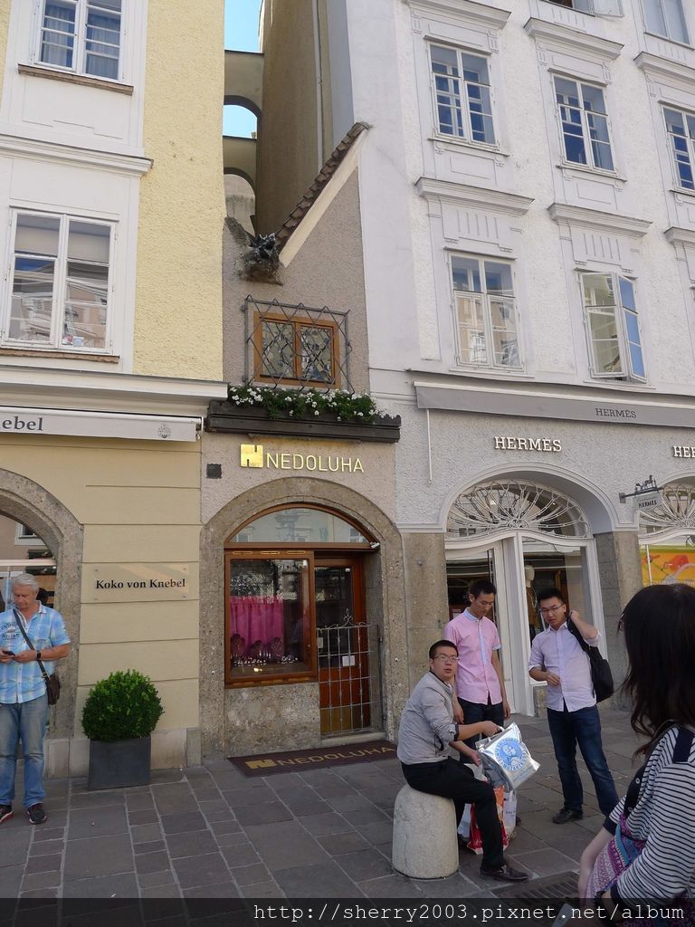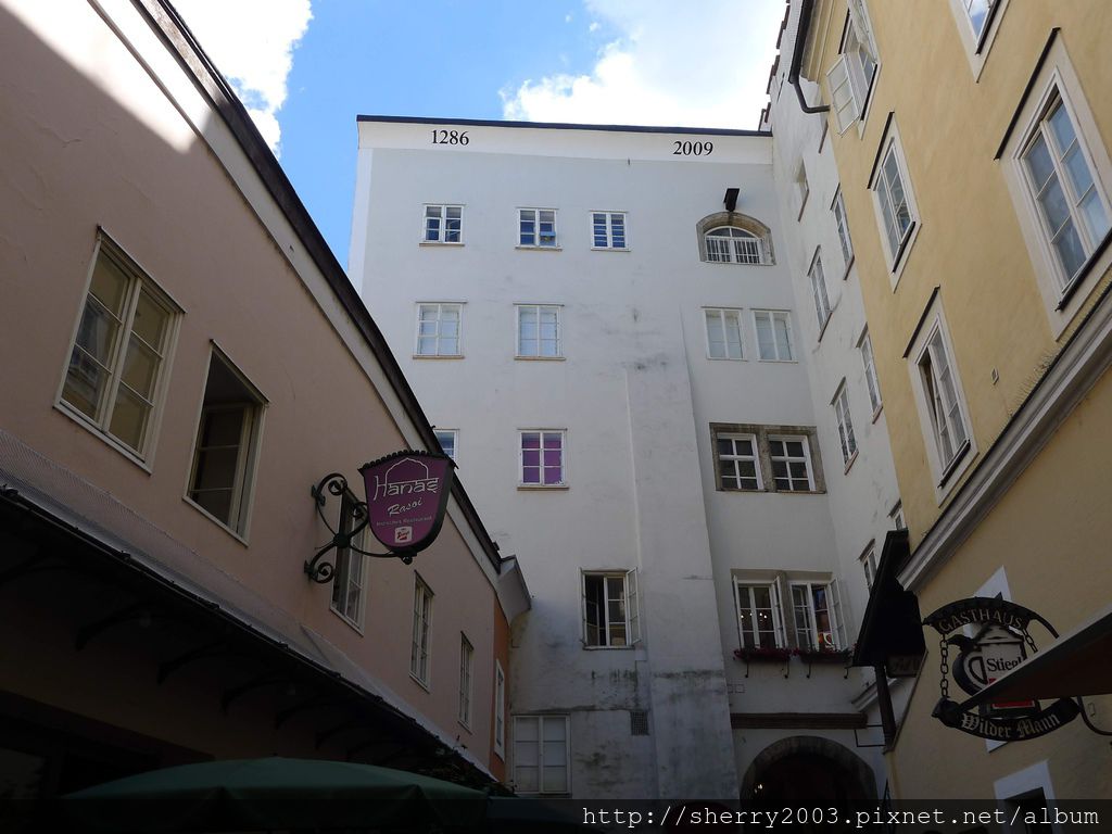 抵達老城區,最著名的就是那穀物大街(Getreidegasse)了,又稱為糧食大街,是老城區的主要街道,沿街道兩旁林立著一棟棟古老的建築,隨便抓出來就是幾百年的歷史。