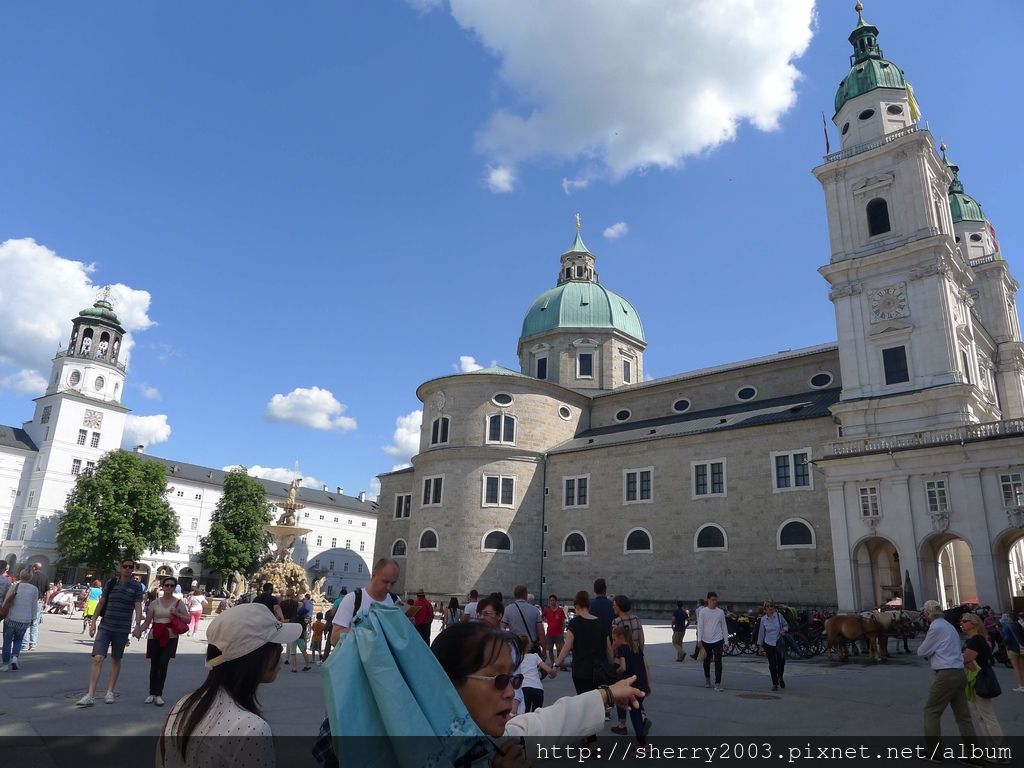 繞過廣場,會看到薩爾斯堡主教座堂(Dom zu Salzburg),沿著座堂往上,可以通往要塞區,這邊是我們今天在薩爾斯堡的最後一段行程。
