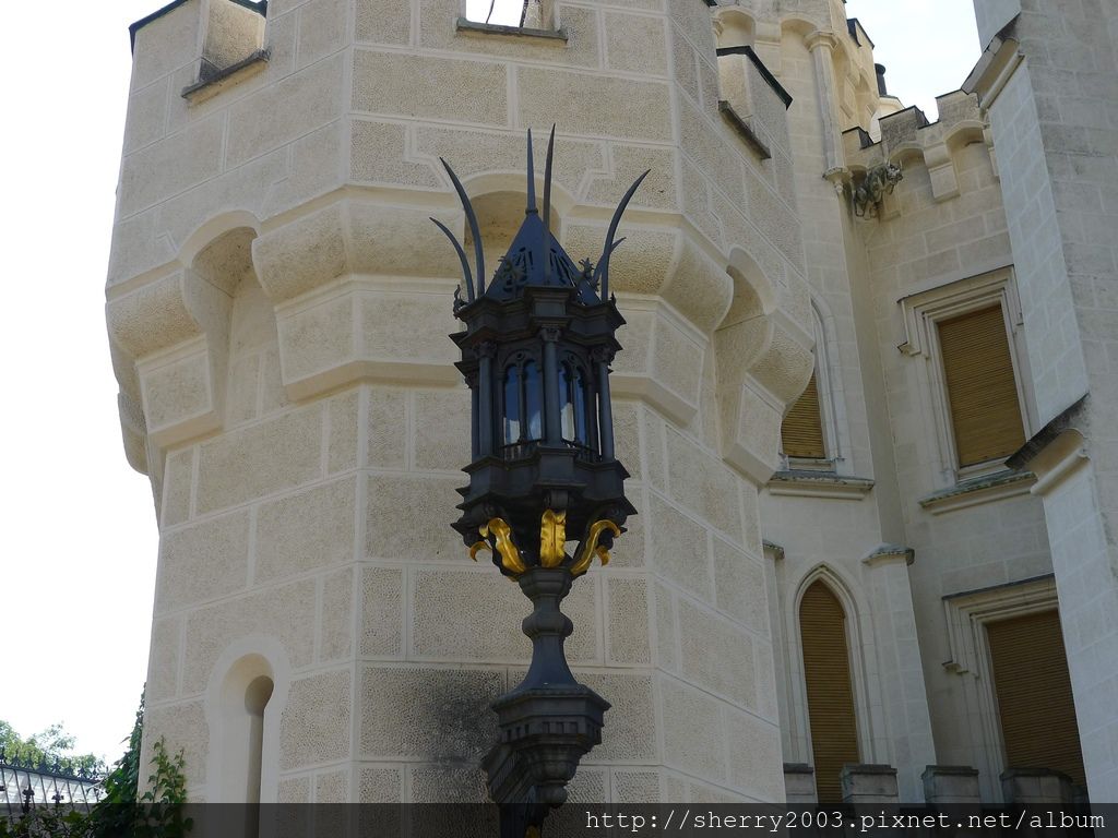 城堡外的吊燈,綜合著都鐸式的經典設計與波希米亞的美麗。